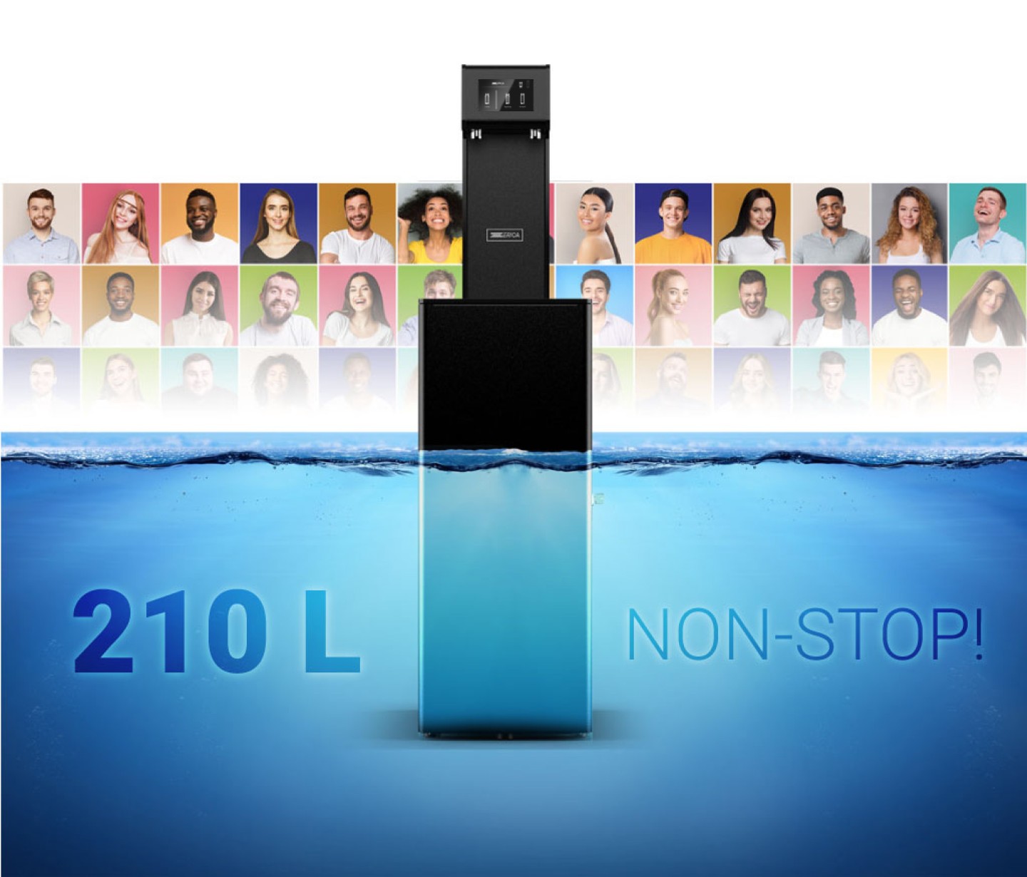 Potente y versátil, Kemonia es un dispensador de agua pie ultramoderno todo en uno. Perfecto para oficinas, empresas y espacios comunes.